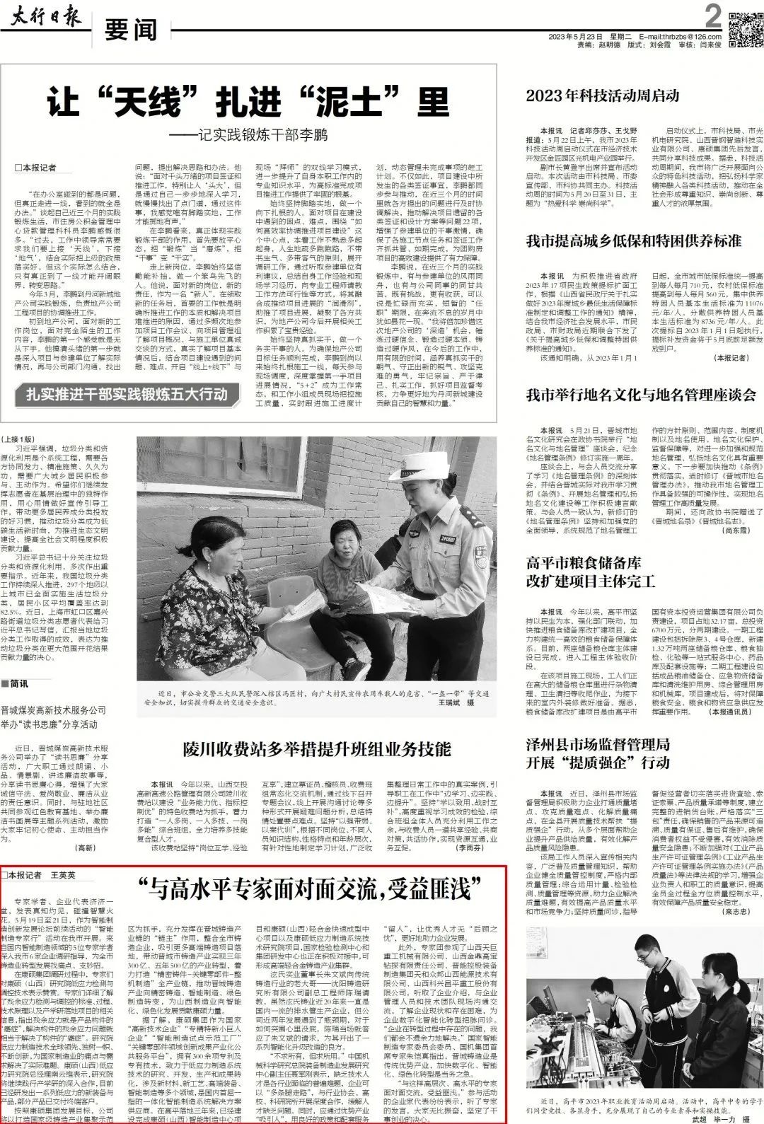 5月23日,《太行日報》刊登了題為“與高水平專家面對面交流,受益匪淺”的文章,詳細介紹了康碩集團作為典型企業在智能制造創新發展論壇“智能制造專家行”活動中的重要角色。作為本次專家調研的焦點,康碩集團以其卓越的關鍵零部件智能制造解決方案得到了專家們的高度贊賞。這次交流不僅為康碩集團帶來了專家們寶貴的建議和見解,也進一步堅定了康碩集團在制造業領域的深耕細作的決心。